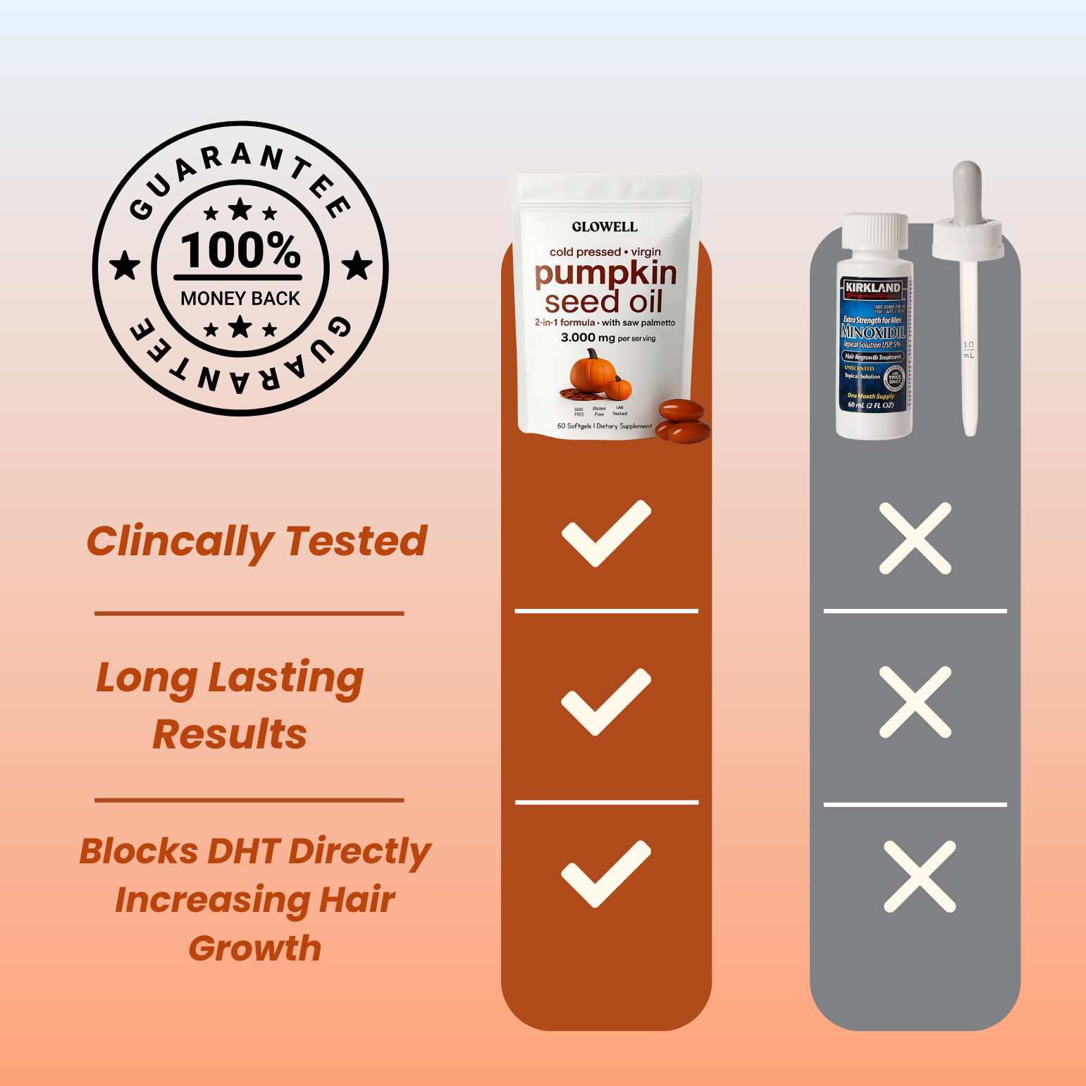 Glowell blocks DHT naturally the hormone Minoxidil cant get to. Our formula features: